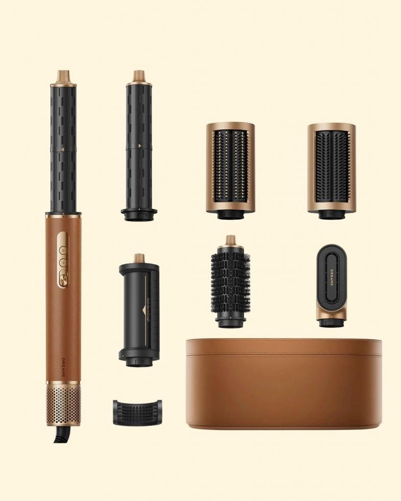 Ce sèche-cheveux et appareil de coiffage est un 7-en-1. Il promet que les 7 embouts magnétiques se fixent d’un geste pour chaque opération: séchage, volume, anti-frizz, boucles, etc… . L’appareil ajuste la chaleur automatiquement pour protéger la fibre capillaire.