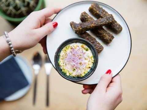 - Frit: pour le frire, il faudra découper le halloumi en bâtonnets et le recouvrir de farine, d'œufs battus et de chapelure. Trempez-les dans une friteuse ou une sauteuse à 160/170°C quelques minutes. On avait d’ailleurs piqué la recette des frites de halloumi à un de nos restos libanais préféré, jetez-y un œil.