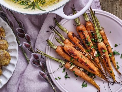 Vous n’avez pas le temps de concocter plusieurs accompagnements? Pensez à une préparation qui mélange féculents et légumes. Nos tranches de pommes de terre sautées et pak choï, par exemple, tout comme notre salade de quinoa aux haricots, roquette et poires rôties.