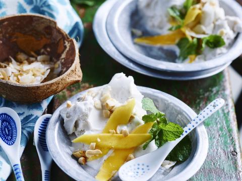 Tarte-pudding à la rhubarbe, sirop au Grand Marnier