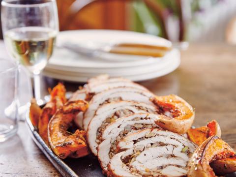 Entrecôte grillée, macaronis, sauce fraîche au curry-lime