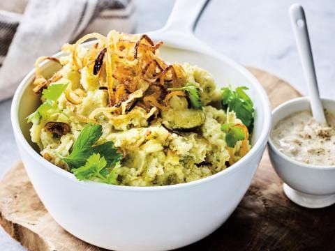 Stoemp de choux de Bruxelles rôtis, sauce moutarde