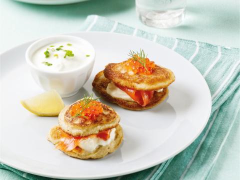 Blinis de sarrasin, saumon fumé et crème épaisse