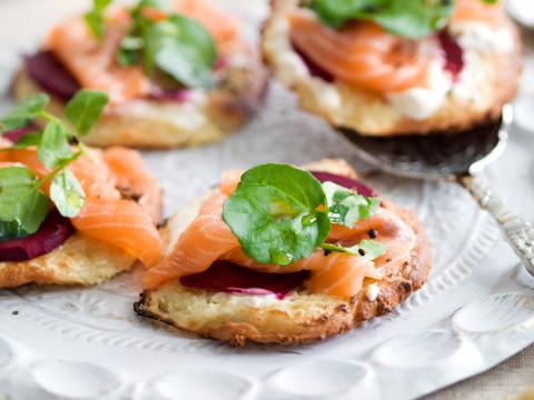 Bouchées-pizzas au saumon fumé, crème aigre
