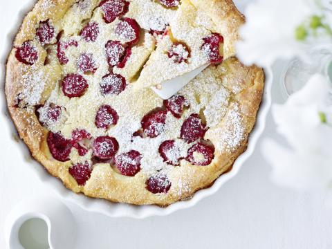Tarte-pudding à la rhubarbe, sirop au Grand Marnier