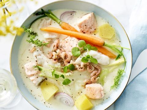 Turbot croustillant, purée et chips de panais, sauce champagne et crevettes