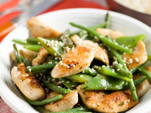 Wok de poulet aux légumes verts