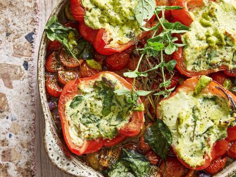 Poivrons farcis à la ricotta, pesto maison