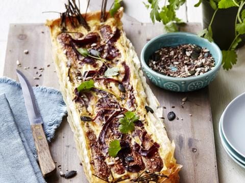 Quiche aux jeunes carottes et à la viande des grisons