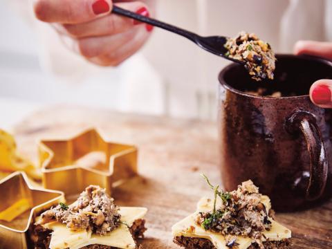 Croque-étoile à la tapenade de champignons, chutney d'oignons