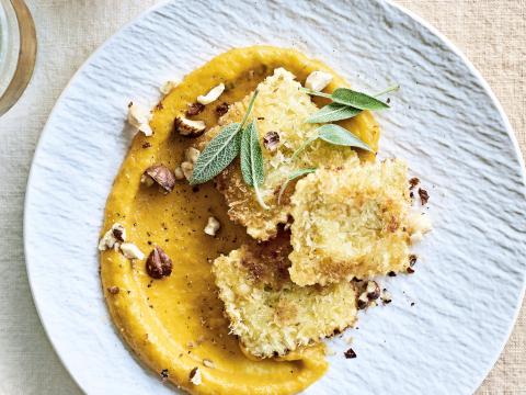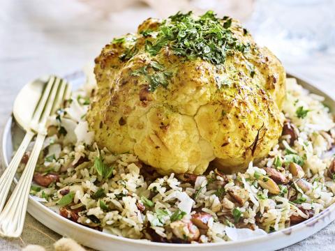 Carottes fanes au four, lentilles et fromage Wenleydale