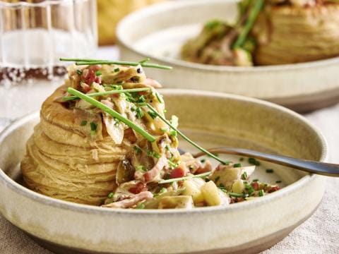 Feuilletés aux chicons et aux lardons, pomme