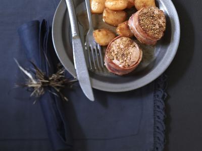 Noisettes de chevreuil au jambon cru et topinambours glacés au vinaigre