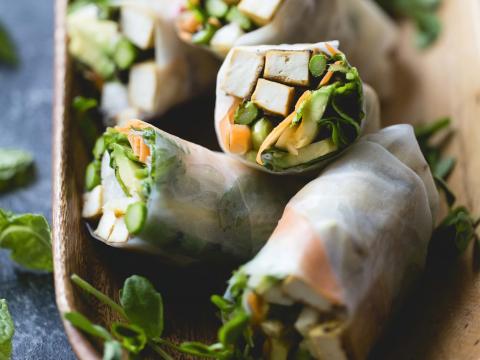 Rouleaux de printemps veggie, sauce au beurre d'arachide