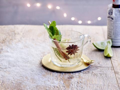 Versez les jus de citron vert et de pamplemousse et diluez avec de l'eau pétillante et un tonic.