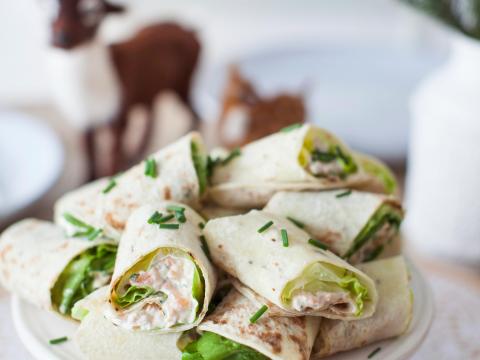 Taillez finement le fenouil et les herbes fraîches et incorporez-les au saumon mariné, ainsi que les cubes de saumon fumé. Assaisonnez de sel et de poivre.